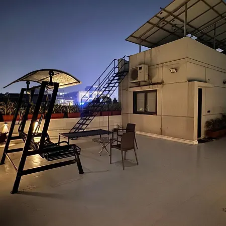 A 37 m²-es X-Large Studio Penthouse With Private Outdoor Seating Ahmadábád a Naranpura körzetben található, ahol privát parkolót és olyan modern kényelmi szolgáltatásokat kínál, mint a Wi-Fi. A Gandhi Ashram emlékhely nagyjából egy 25 perces sétára, míg a Hathi Singh-templom körülbelül 3 km-re van az apartman területétől.